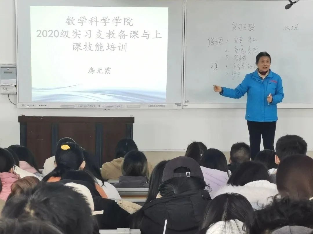 房元霞从“3个强调”和“2个注意”展开对实习支教备课与上课技能的培训。她强调,安全是基础、沟通是桥梁、教学是根本,希望同学们在支教岗位上能够全身心的投入,做出自己的成绩。