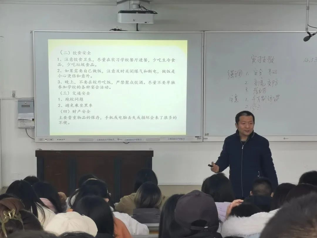 刘兴就实习安全问题、个人生活安排、实习期间请销假等工作,为同学们进行了详细解读,要求同学们重视并珍惜实习机会,端正态度,虚心求教,高质量地完成实习任务。