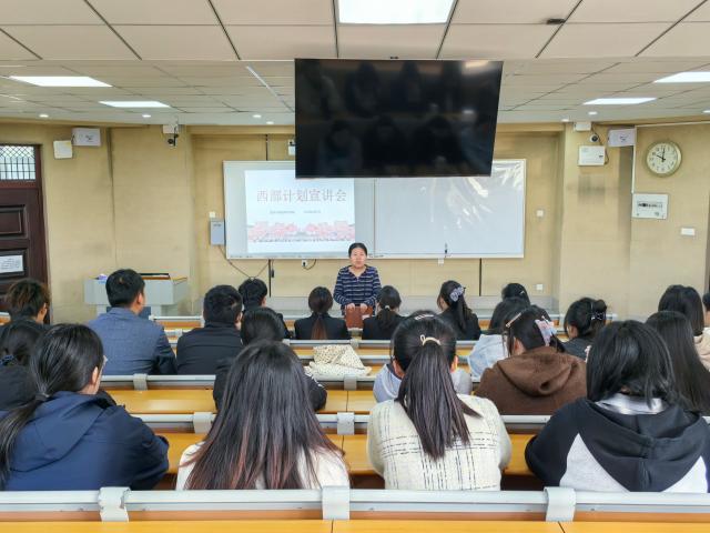 宣讲过程中,岳琳琳结合往届毕业生党员案例,生动展现了支教助学、支农支医、基层社会治理、乡村振兴服务等不同岗位的真实工作场景,分享了志愿者们在西部基层克服困难、坚守岗位、服务群众的感人故事,让同学们直观感受到西部建设的迫切需求,进一步深化了对志愿服务精神时代内涵的理解与认同。
